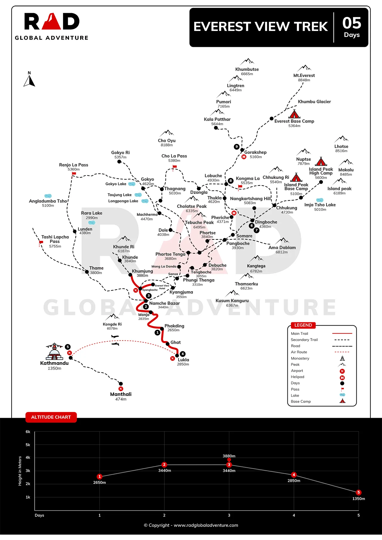 It’s a 5-day trip flying to Lukla, trekking to Namche, hiking to Everest View Hotel, then returning to Kathmandu.