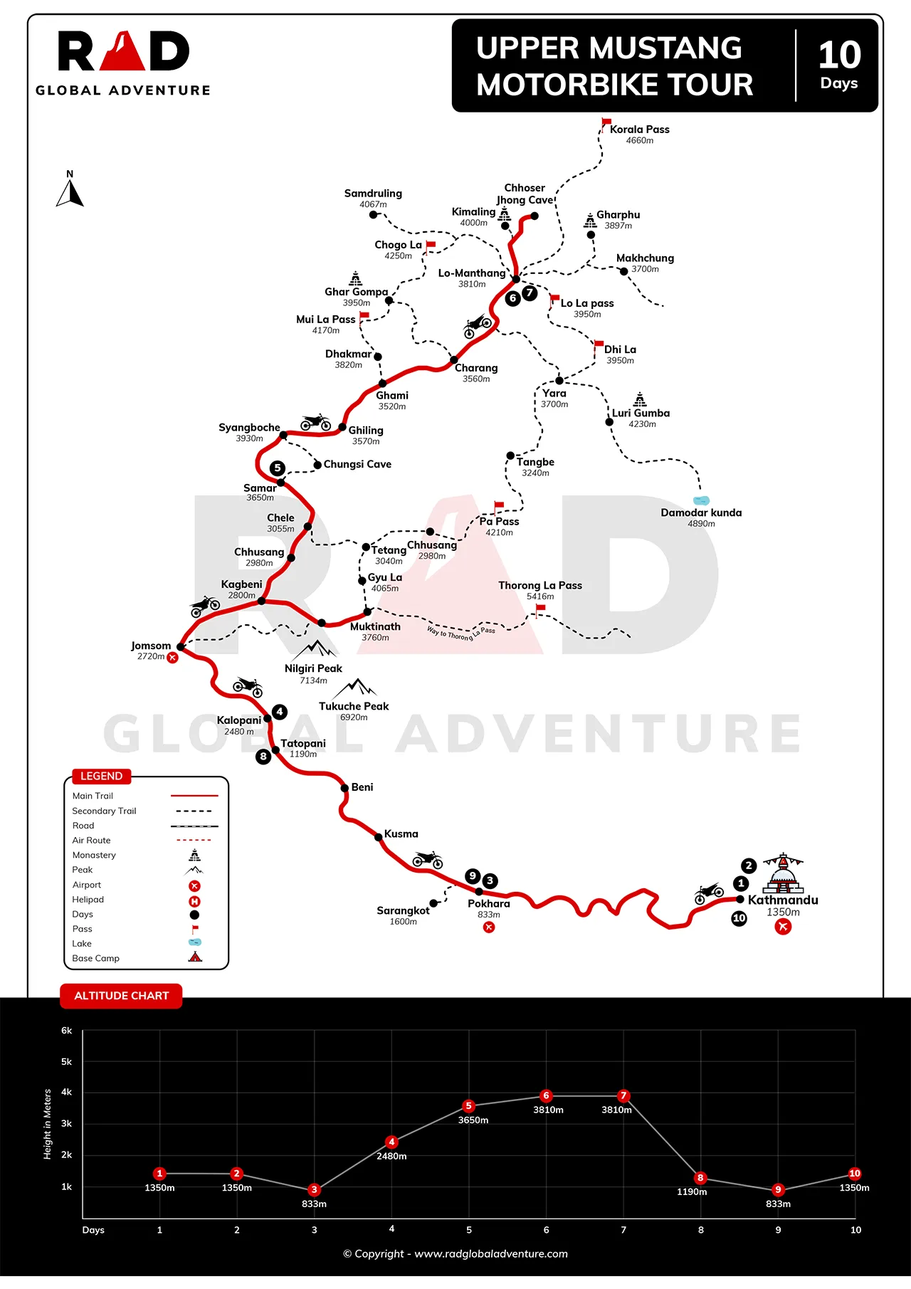 Guides finish the day and show you what’s coming up the next day. You need to sleep enough and drink enough water to stay alert and full of energy. This itinerary fits any Upper Mustang motorbike tour, so riders can easily change it.